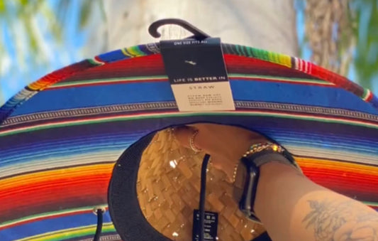 Straw Sun Hat - Mexican blanket print